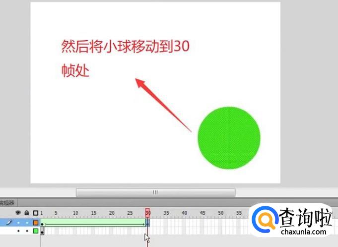 接着将圆形工具从第一帧的地方拖到30帧的地方,如下图所示