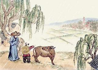 清明节的时候,诗人不能够回家扫墓,却孤零零一个人在异乡路上奔波,心里已经不是滋味;况且,天也不作美,阴沉着脸,将牛毛细雨纷纷洒落下来,眼前迷蒙蒙的,春衫湿漉漉的。诗人啊,简直要断魂了!找个酒家避避 雨,暖暖身,消消心头的愁苦吧,可酒店在哪儿呢?