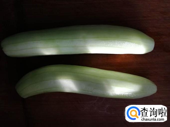 挑选新鲜、个头均匀的黄瓜两根,将黄瓜削皮洗净。