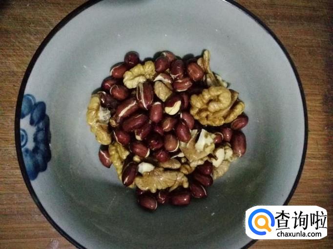准备红皮花生,剥出核桃仁。