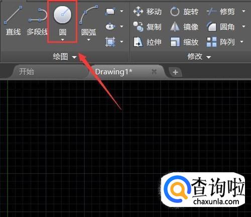 打开CAD之后在该软件的绘图区里找到圆形命令,如图所示: