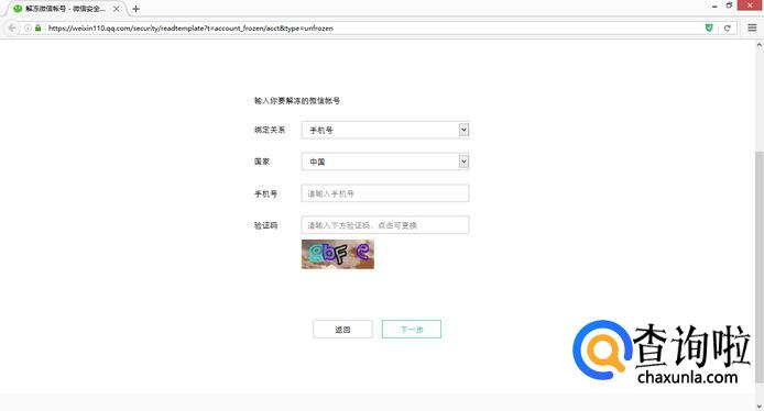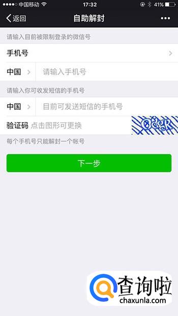 ②根据登录弹窗进入解封流程填写信息。