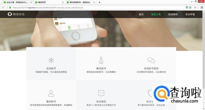 方法二:如果微信帐号因违规或其他原因被限制登录的用户请通过微信客户端按以下指引进行自助解封。