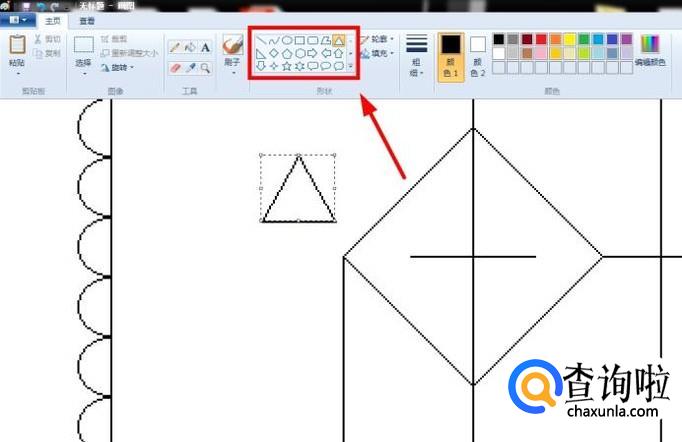 随后选择“三角形”图案,绘制出一个三角形,点击“旋转90度”