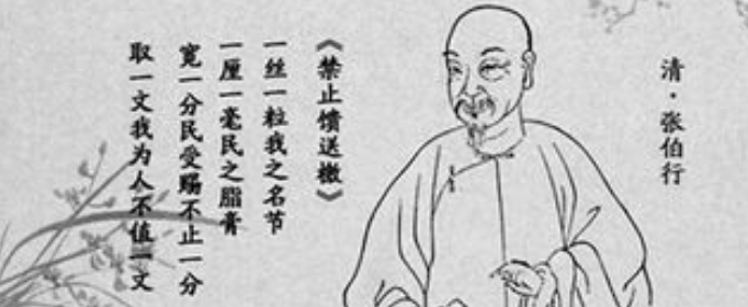 张伯行任江苏巡抚的时候,为禁下属送礼,专门发布檄文:“一黍一铢,尽民脂膏。宽一分,民即受一分之赐;要一文,身即受一文之污。”历官二十余年,以清廉刚直称。其政绩在福建及江苏最为着名。学宗程、朱,及门受学者数千人,谥清恪。