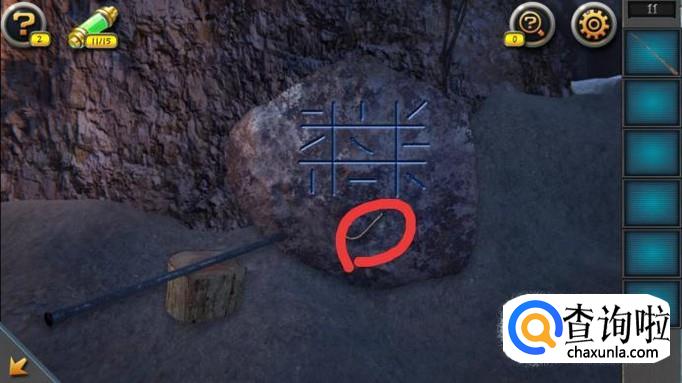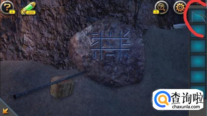 将门边的密码按石头上的提示调成如图所示的样子,得到子弹。