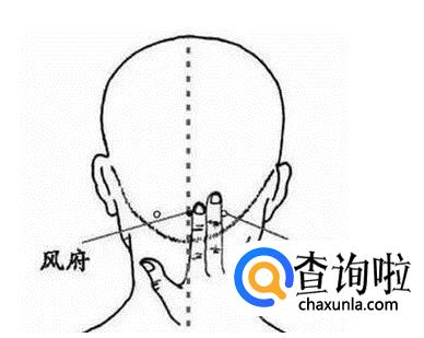 取穴时,头略低,耳后椎骨两次的凹陷处即为此穴。一般双手扣于后脑,双手拇指指腹的位置,即为风池穴。