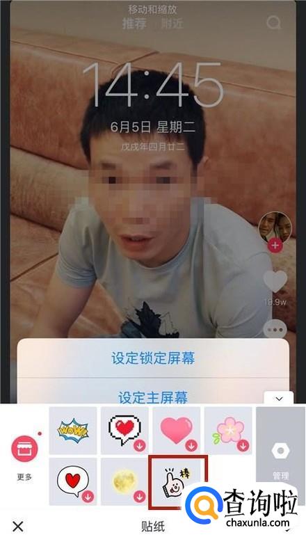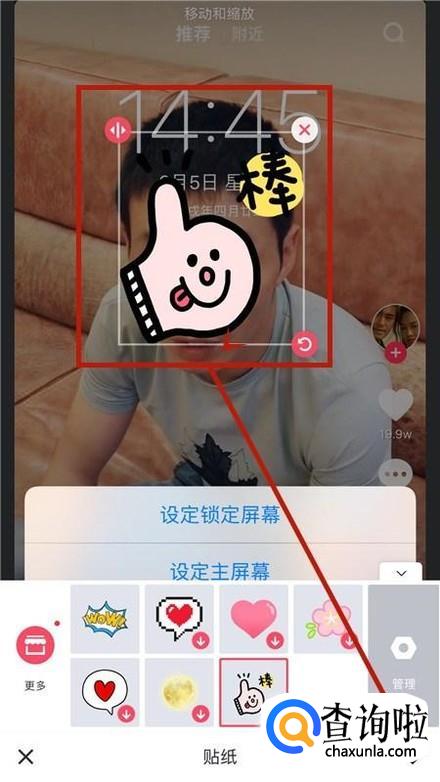 最后把贴纸遮挡住人物的脸部轮廓并点击屏幕右下方的“√”,如下图所示。