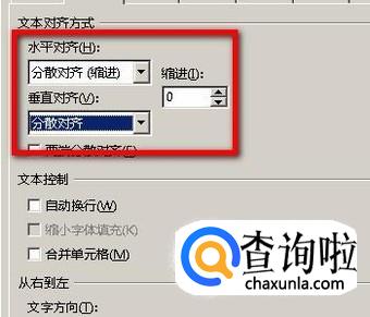 把水平对齐与垂直对齐都分别设置为:分散对齐。再点确定。