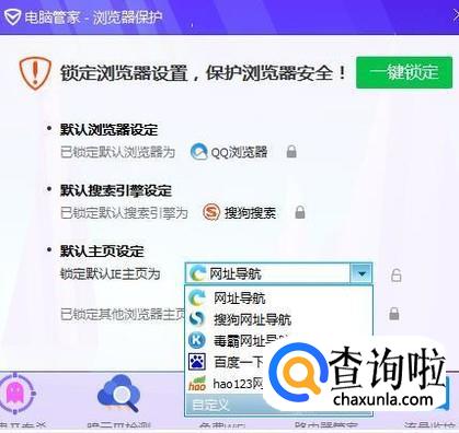 最后把默认主页的网址设定成我们自己想要的网址,并点击一键锁定就可以了。