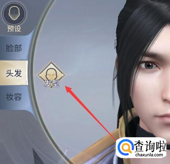 在头发设置页面,共有三种发型可供选择,如图所示。
