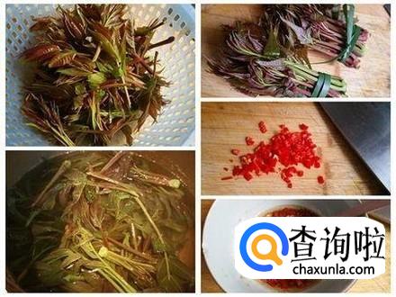 把香椿搞掉老的部位,再洗干净备用。