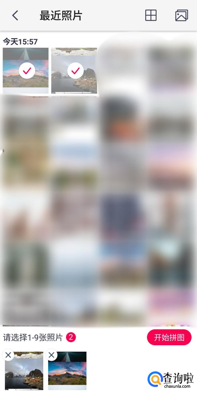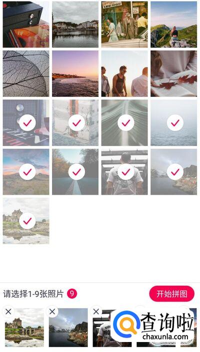 选中需要拼的图片,这里最多选中九张,选好后点击开始拼图