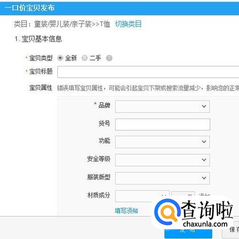 进入到发布商品的操作页面。