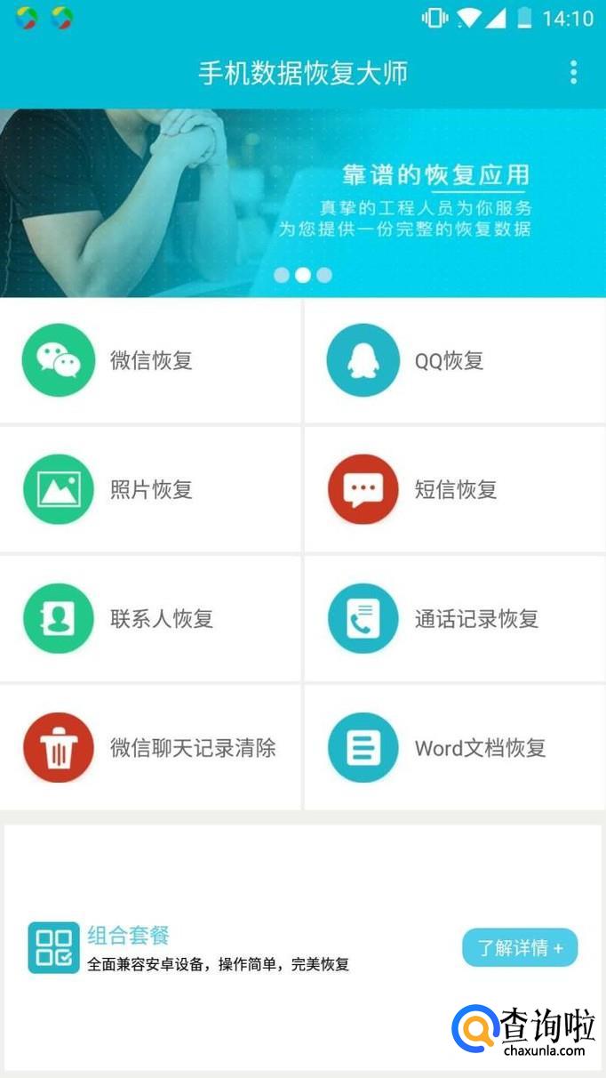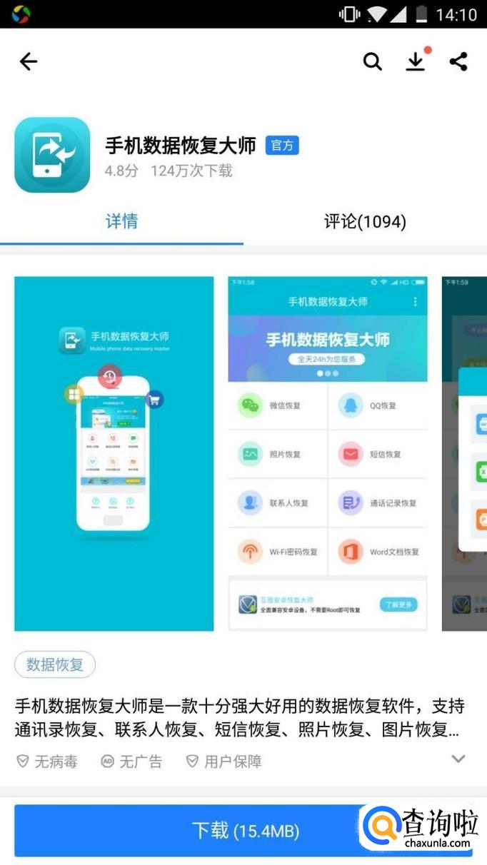 首先,在手机自备应用商店,下载“手机数据恢复大师”
