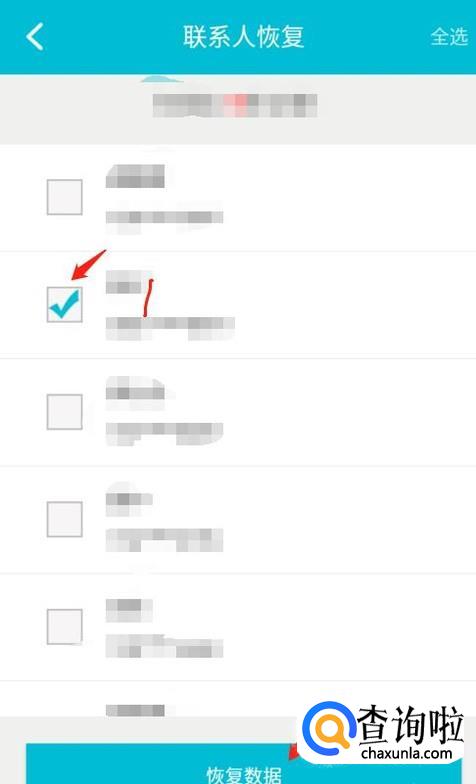 扫描完成,你可以看到自己之前删除的联系人,勾选需要恢复的联系人,点击下方“恢复数据”即可恢复