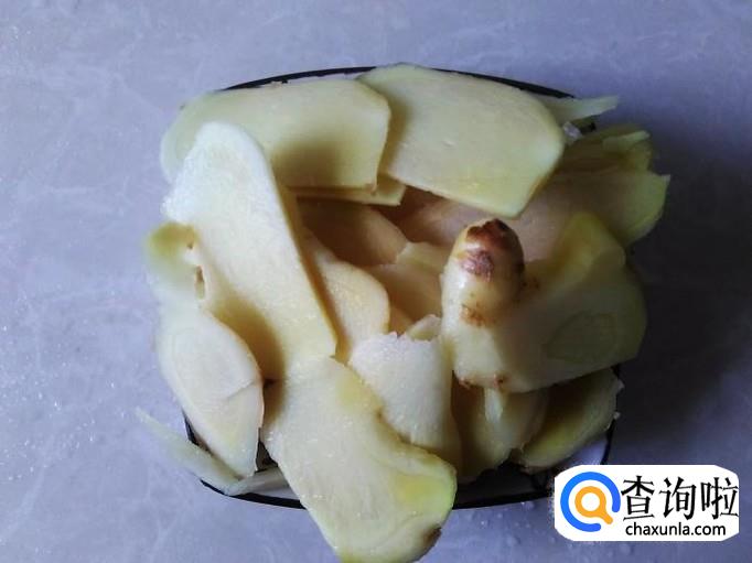 首先把嫩姜清洗干净,然后切成薄片,乌榄准备好。