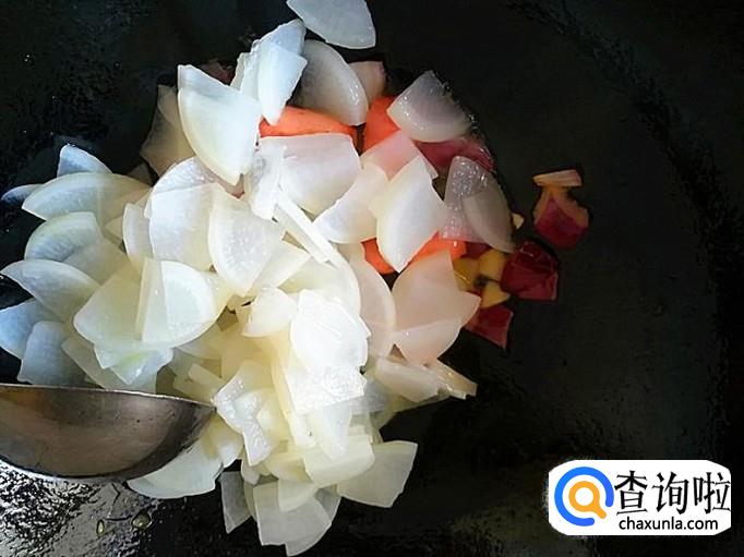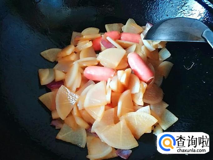 怎么做营养好吃的小火腿肠炒洋葱象牙萝卜