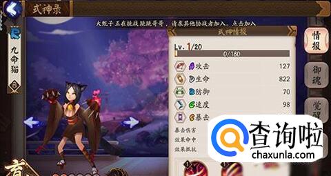 另外如果有式神挑战券的话,可以去刷第1章的挑战,一次就可以获得14个九命猫碎片。