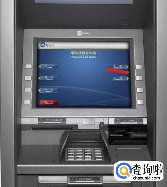 数完密码之后,显示屏上会出现取款这个选项,你再点击取款。