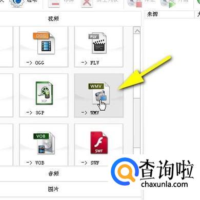 鼠标点住右侧的滚动条向下拉,看到:WMV;然后,鼠标点WMV