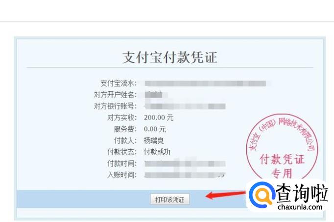搜出结果后我们找到其中一条记录点击“详情”就会跳转到新的页面,我们继续点击“付款凭证”进入。进入后我们会看到“打印该凭证”的按钮,我们点击就可以打印了。