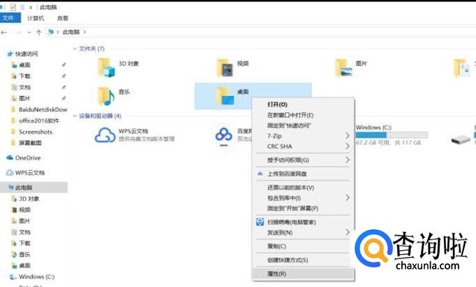 在对应的文件夹,也就是桌面文件夹,右键鼠标,点击属性