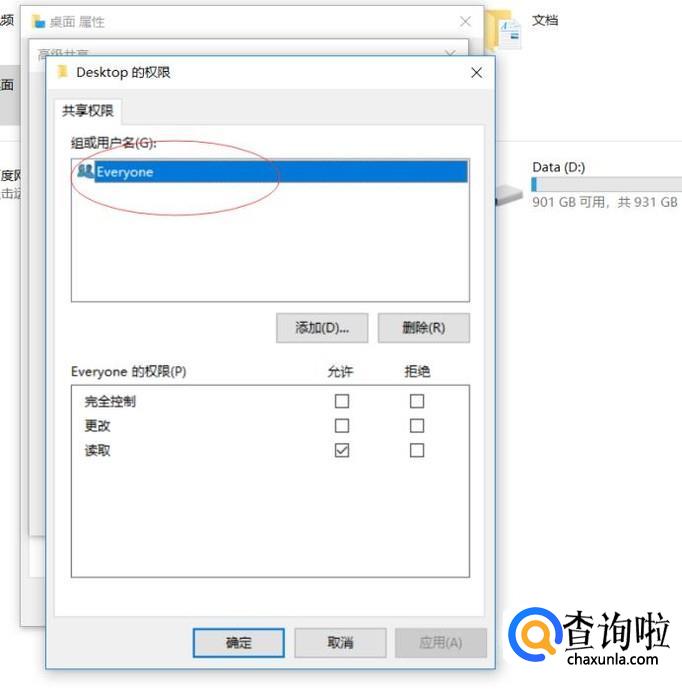 点击权限,给制定用户赋予权限,这里为了说明,直接选择everyone,也就是任何人都可以访问