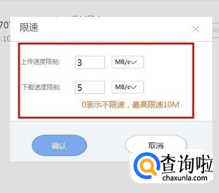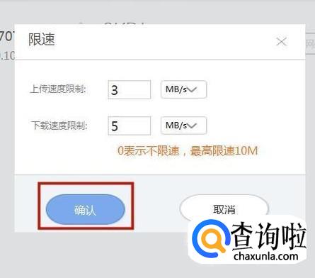 接着设置好上传速度和下载速度,如下图所示。