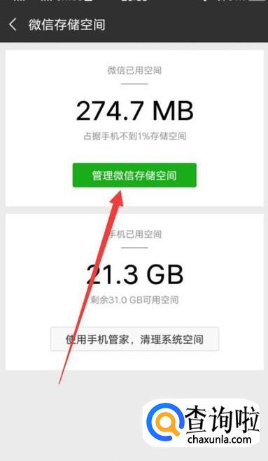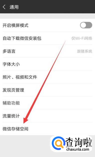 进入之后,选择“微信存储空间”,点击并进入,如图所示。