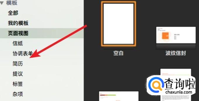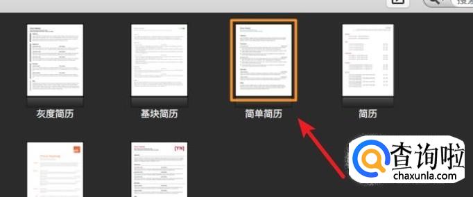 点击后,在右边会列出一些简历的模板,选择自己喜欢的一个,双击这个模板。