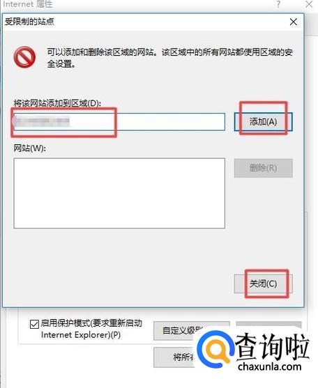 然后我们输入不良网站,之后我们点击添加,然后点击关闭;