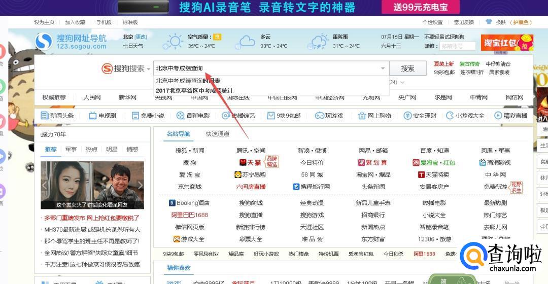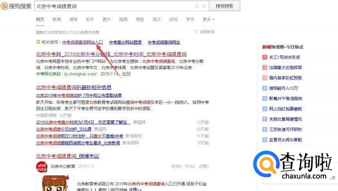 首先,在搜狗高速浏览器中搜索“(地区)中考成绩查询”,以北京为例。