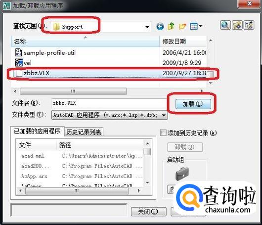 然后,我们加载“zbbz.vlx”,加载后点击关闭。