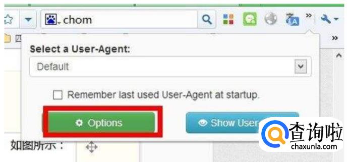 在浏览器中下载“User-Agent Switcher Options”插件并安装。