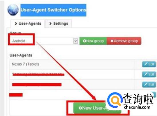 在Group下输入相应的微信配置,我的是安卓,就输入Android,输入完毕后,点击New User-Agent。