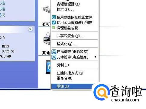 右键点C盘,选择“属性”。