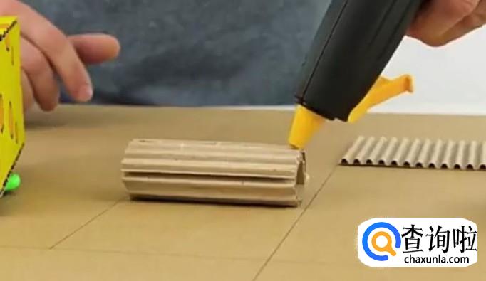 我们再用硬纸板的中间部分,卷成圆筒状。