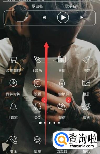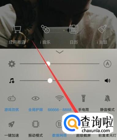打开手机,进入手机主页面,然后从屏幕的底部向上滑动,打开快捷菜单,如图所示。