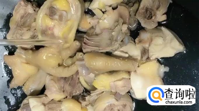 煮好的小鸡凉水冲洗干净。(小鸡肉嫩,味更加鲜美,切一只的量刚刚好,不多不少。因此建议大家用小鸡,你如果喜欢吃鸡腿,用鸡腿也可以)
