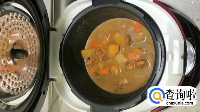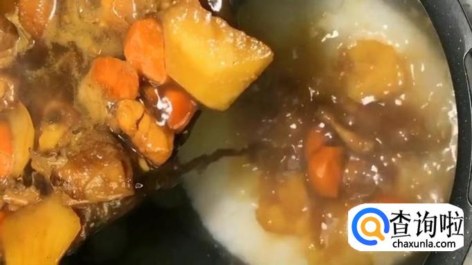 将炖好的鸡块倒入电饭锅中