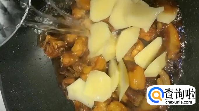 锅中下入鸡块,添加蚝油、海鲜酱油调味