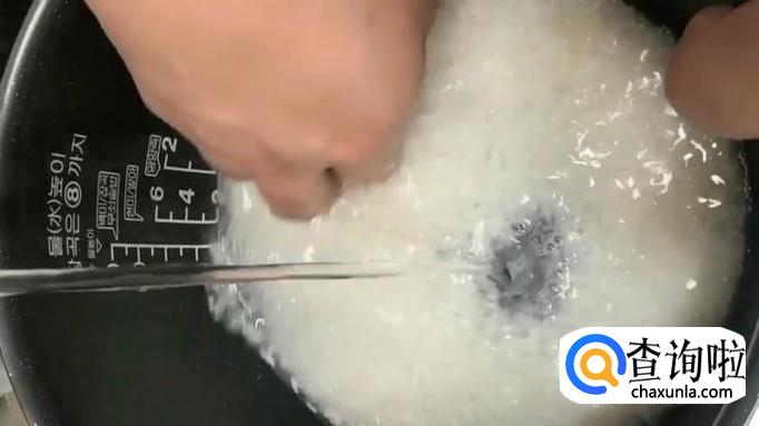 另用电饭锅放入大米,洗净,添加清水(与平时焖饭的水一样多)