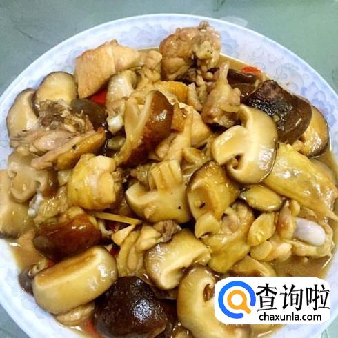 准备,鸡一个,半斤香菇,配料,姜蒜料酒,辣椒,酱油,糖,先把鸡洗干净剁成小块,葱姜,辣椒切成丝备用,把鸡肉煮一下水捞出来。