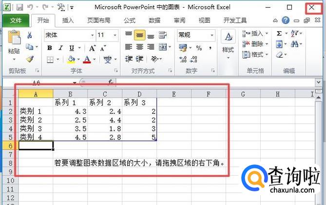 之后会弹出excel表格,我们在里面可以进行更改,此处就不更改了,然后我们点击右上角的关闭;