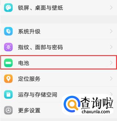 进入到VIVO X20手机的设置界面以后,选择”电池“选项。