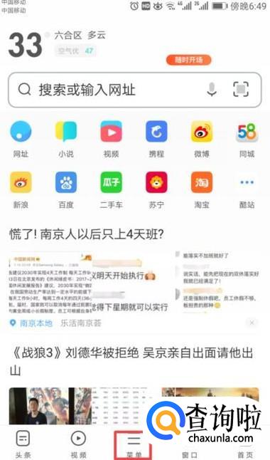 进入浏览器之后,我们点击下方中间位置的菜单按钮;