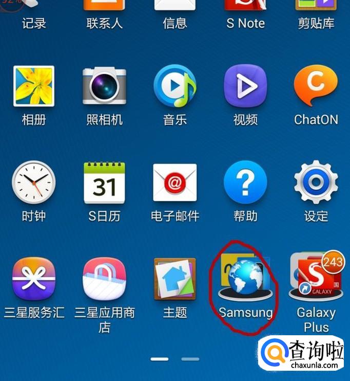 在应用程序里找到一个叫“samsung”的图标,点一下。