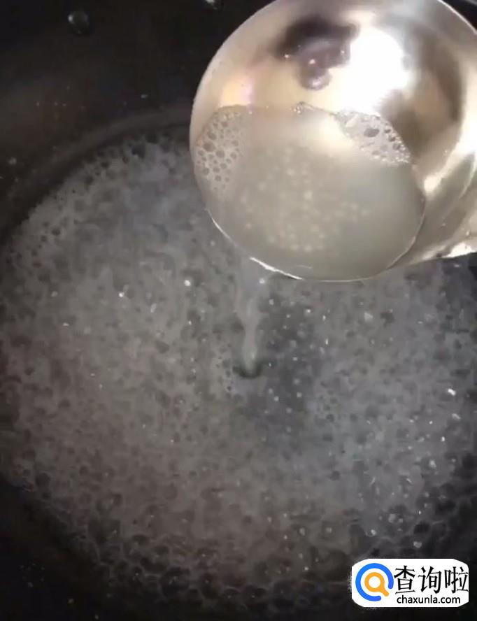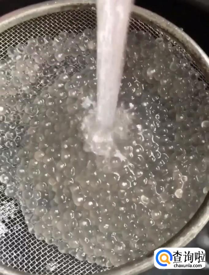 然后我们将煮好的西米放入凉水中冲凉,控干水分备用