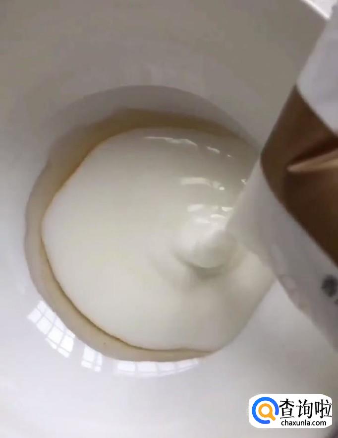 接着我们在一个碗中倒入适量的蜂蜜,加入半袋酸奶,一袋纯奶,搅拌均匀